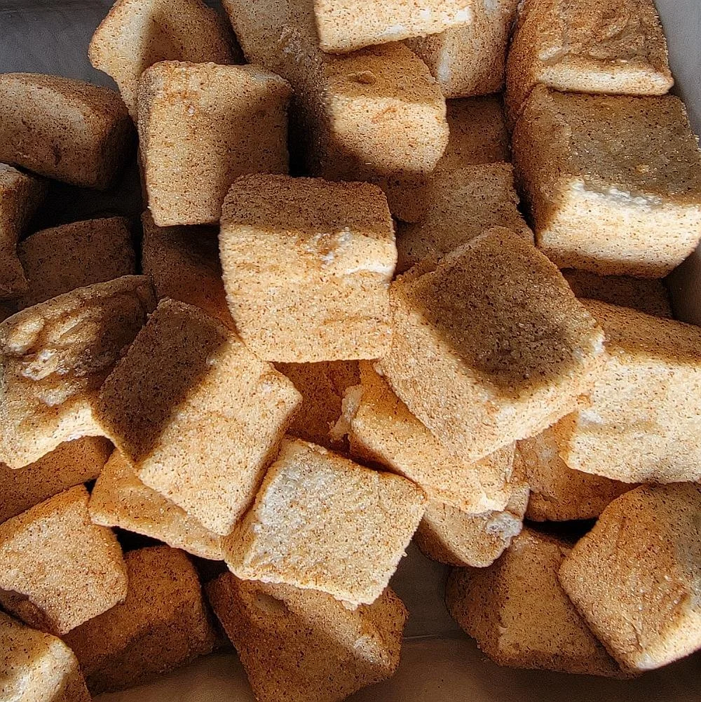 Embark on a tantalizing journey with our churro-flavored marshmallows, a delightful twist on a beloved classic. Crafted with care, each marshmallow is infused with the rich flavors of brown sugar and butter, evoking the irresistible essence of freshly baked churros. To enhance the experience, we carefully coat them in a delicate layer of cinnamon sugar, delivering that unmistakable warmth and spice. Indulge in the perfect balance of sweet and cinnamon in every soft, pillowy bite. Our churro-flavored marshmallows are a treat that captures the essence of a festive fairground, bringing joy to every moment.